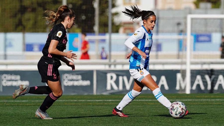 No era un partit de la lliga de les blanc-i-blaves. Però després de plantar-li cara a la Reial Societat, encaraven el partit amb moderat optimisme. Tot i així han estat dins al partit fins al 1-3 a l’inici de la segona part. Però ha estat un miratge, sobretot arràn de quedar-se amb deu jugadores sobre el terreny de joc. El partit ha començat amb un gol pràcticament en fred quan Olga Carmona al minut 9 marcava el primer gol de l’enfrontament, amb un xut que es va colar per sobre de les mans de Dossey. Fins a la mitja hora es mantenia la ressistència defensiva espanyolista davant un conjunt ‘merengue’ que buscava el segon però no el trobava. Fins que a la mitja hora Chioma perforava per segon cop la porteria blanc-i-blava i sense temps d’haver digerit el segon Olga marcava el tercer a pocs minuts d’arribar al descans.