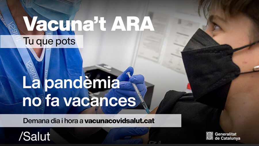 El Departament de Salut ha impulsat una nova campanya per potenciar la vacunació a les franges amb menys cobertura, com és la dels joves o la d’aquelles persones de poc més de 40 anys. Sota el lema ‘Tu que pots, vacuna’t ARA contra la COVID’, té com a objectiu motivar la ciutadania perquè demani cita durant aquest estiu, abans que els estudiants es reincorporin a les aules. La campanya es podrà veure als mitjans de comunicació tradicionals i a les xarxes socials a partir d’aquest dimecres 18 d’agost. Salut ha recordat que la vacuna és “la millor eina” per lluitar contra la covid-19 i, per això, remarca la importància d’arribar a la tardor “amb una bona cobertura poblacional“.