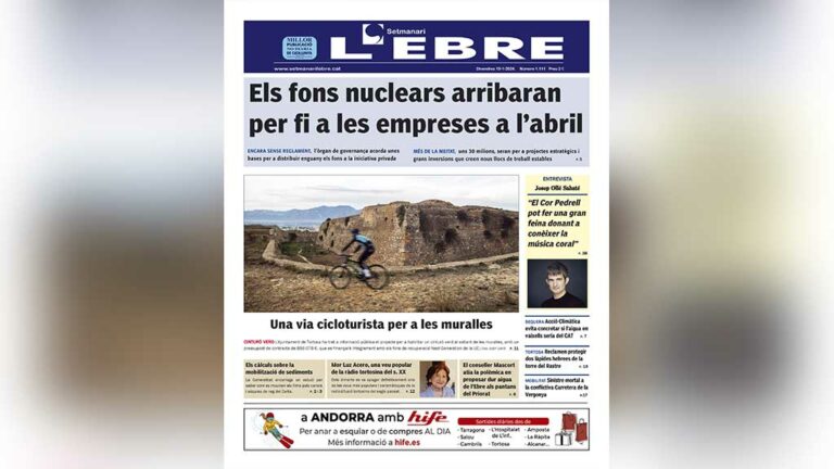 La portada de l’edició en paper número 1111 del Setmanari l’Ebre dedica el titular principal de la portada a l’arribada imminent, a partir de l’abril, dels fons nuclears a les empreses que es vulguen instal·lar o fer créixer els seus projectes en les àrees nuclears, a diferència de la fórmula que s’ha fet servir el 2023 per a repartir la recaptació de forma equitativa entre 97 ajuntaments. El Fons Nuclear enceta així la seua essència, com s’editorialitza en este número.