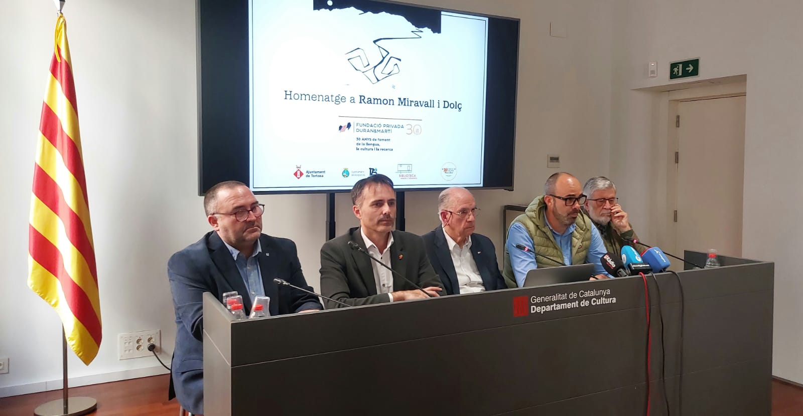 La sala d’actes dels Serveis Territorials del Departament de Cultura a les Terres de l’Ebre ha acollit aquesta tarda la roda de premsa de presentació dels diversos actes d’homenatge al Dr. Ramon Miravall i Dolç, organitzats per la Fundació Privada Duran&Martí amb la col·laboració dels ajuntaments de Roquetes i Tortosa. El vicepresident de la Fundació, Lluís Pegueroles, ha explicat que Ramon Miravall “va tenir una intervenció substancial” en el procés de creació de la Fundació. Per aquest motiu, els membres del patronat han decidit organitzar aquest homenatge a “un roquetenc de Tortosa o un tortosí de Roquetes”.