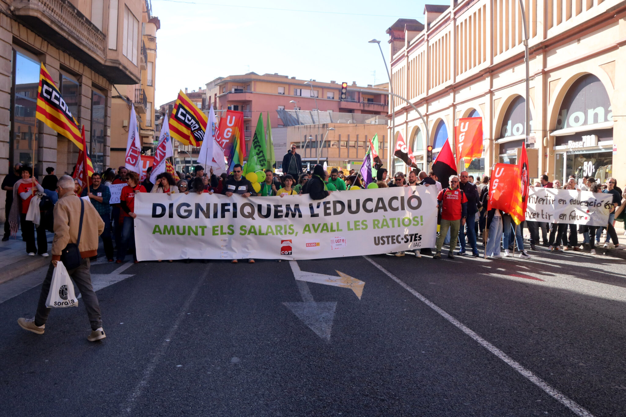 Manifestació “històrica”, segons els sindicats convocants, aquest dimecres al migdia pels carrers de Tortosa amb motiu de la vaga de mestres, professors i personal laboral d’aquest dimecres. Unes 4.000 persones, segons els organitzadors, 1.300 segons la policia local, han marxat des de la plaça Barcelona fins al barri del Rastre, on es troben els serveis territorials del Departament d’Educació. Des d’allí han reclamat al Govern que atengui les seves reivindicacions, tant de pujades salarials com de baixades de ràtios d’alumnes per docent, negociant propostes tangibles a la taula de negociació. Els sindicats han avisat que la d’aquest dimecres és una primera jornada de mobilitzacions, amb l’horitzó de la convocatòria de noves vagues al març.